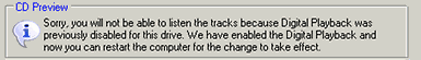 Remarque: Si la lecture de CD numérique a été désactivée, ce message suivant s'affiche (le message est visible dans Windows 2000 / XP):