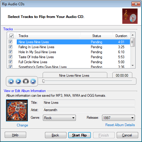 Choisissez des pistes du CD audio pour déchirer. Il existe un contrôle de lecture de CD intégré où vous pouvez écouter les pistes avant de déchirer. Cela vous aidera à déterminer les pistes à déchirer, en particulier pour les CD dont les informations ne sont pas trouvées en ligne.