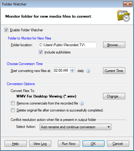 Cliquez Feuilleter Pour spécifier le dossier que vous souhaitez surveiller. Tous les fichiers multimédias supportés présents dans ce dossier sont ajoutés pour la conversion à l'heure programmée. Vous pouvez choisir d'inclure les fichiers multimédias à partir de ses sous-dossiers en activant l'option Inclure les sous-dossiers.