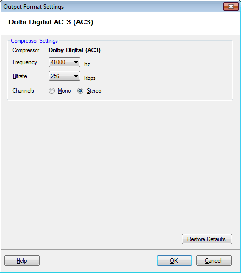 le Dolby Digital (AC3) Produit des fichiers audio avec un son surround riche. La fréquence est réglée sur 48000 Hz, Et bitrate est 256Kbps. le Stéréo La chaîne audio crée une impression de son provenant de différentes directions.