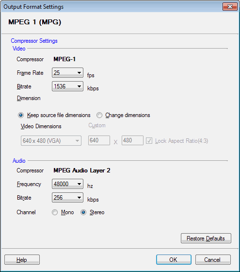 Pour configurer les paramètres de conversion MPEG 1, cliquez sur Formats >> Sélectionnez les formats standard >> MPEG 1 personnalisé >> Configurer.