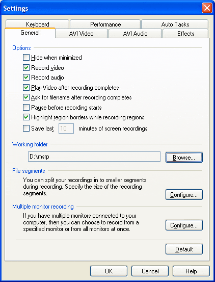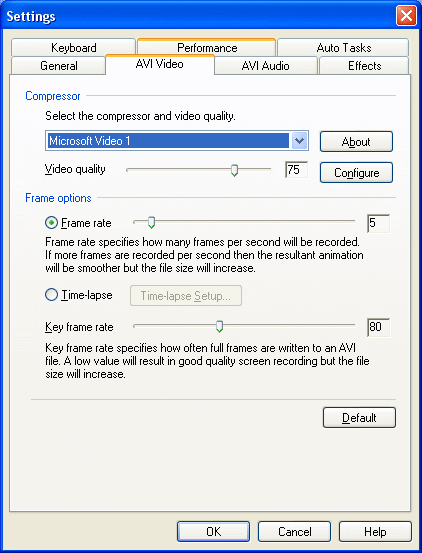 onglet. Par défaut, My Screen Recorder Pro choisit le Microsoft Video 1 compresseur,