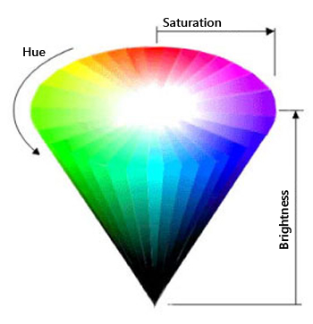 Farben verwendet, um sie zu definieren. Hue ist die tatsächliche Farbe und
