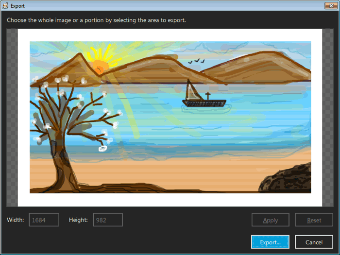 Wenn Sie Export-Dialog öffnen, ändert Sie den Mauszeiger zum Fadenkreuz. Um das ganze
