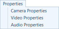 - Menu Proprietà: Cambiare le proprietà della fotocamera, video e audio.