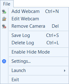 - Abilita modalità nascosta: WebCam Monitor verrà eseguito in background senza visualizzare un'icona sullo schermo o sulla barra delle applicazioni.