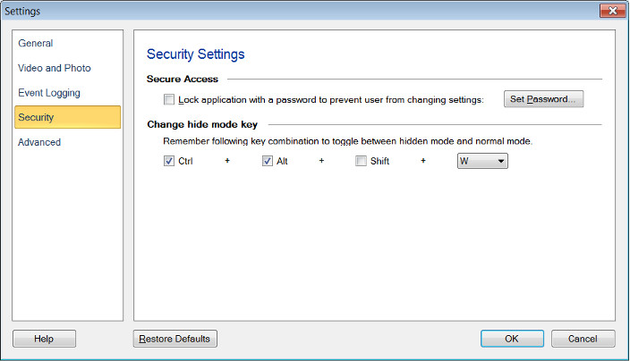 Impostare la combinazione di tasti rapidi per nascondere o aprire l'applicazione dalla schermata del PC per nascondere la sorveglianza dagli intrusi. Ricorda questa combinazione di tasti e lo usa per passare tra la modalità nascosta e visibile. Impara di più riguardo Nascondi modalità.