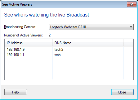 Per visualizzare lo stato corrente delle trasmissioni video in diretta inviate da WebCam Monitor, fare clic su Visualizza >> Chi sta guardando Broadcast.