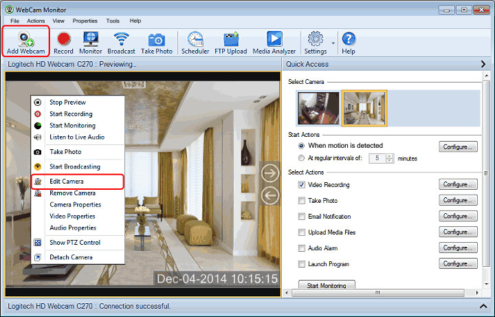 Questa sezione spiega come eseguire operazioni di base come l'aggiunta o la modifica di una fotocamera.